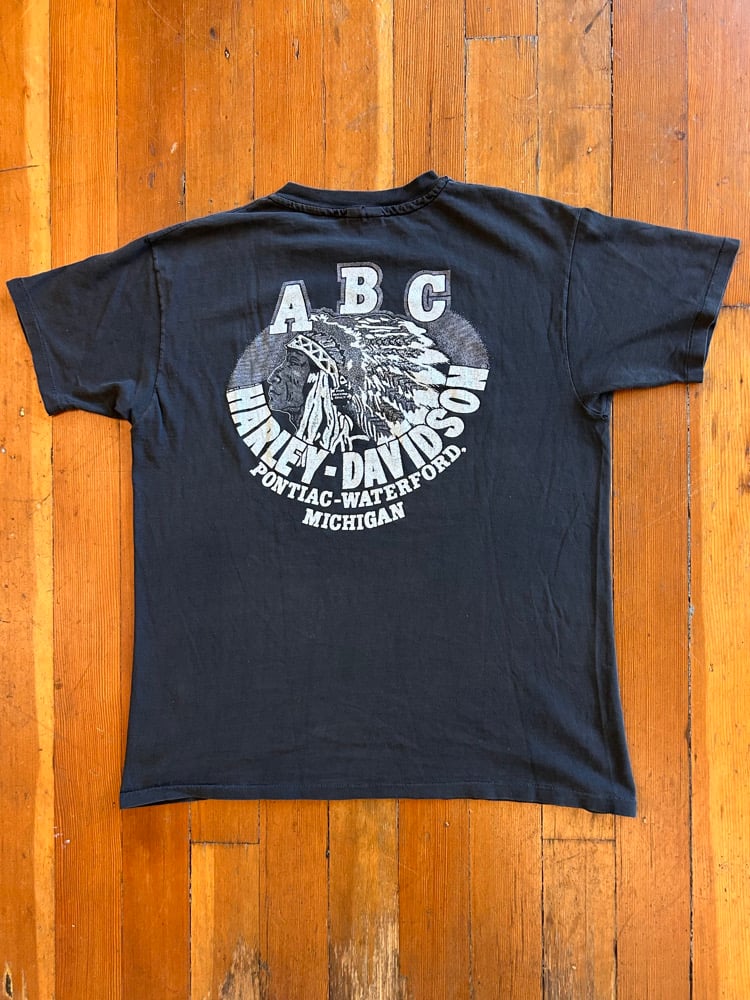 Good vintage condition with light fading and graphic wear, and a pinhole on the back collar