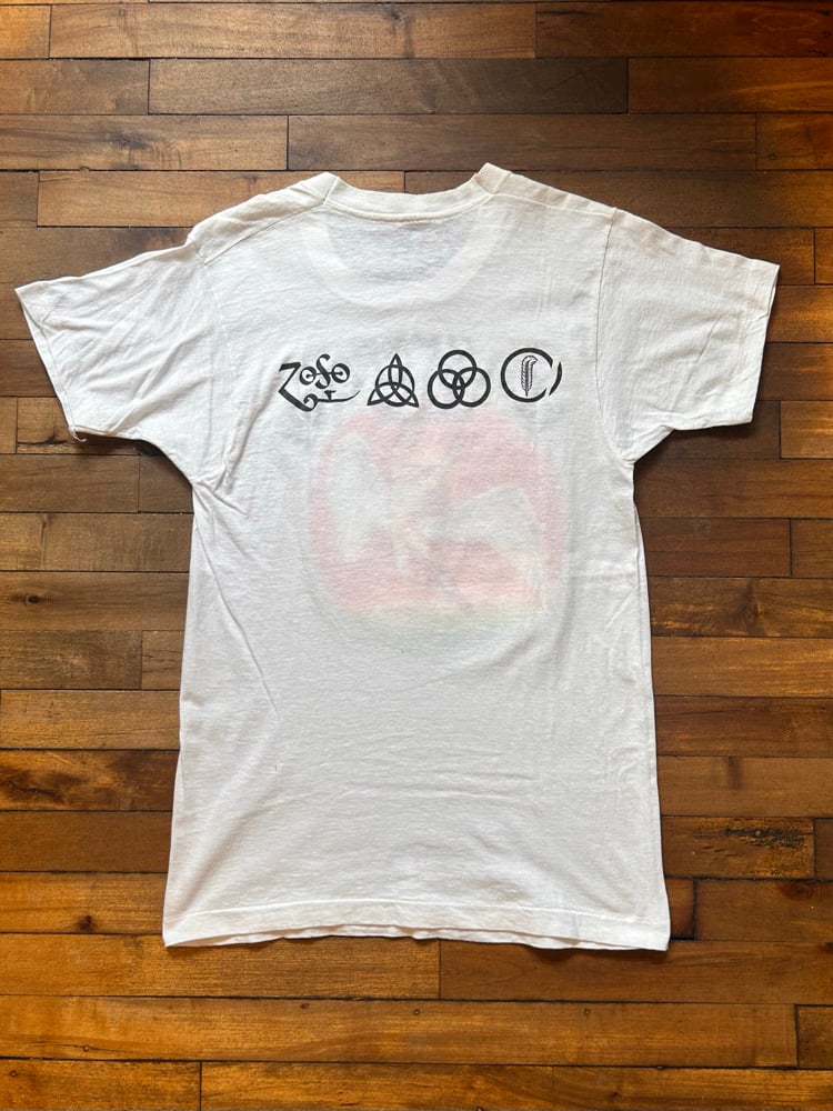 This shirt is in good vintage condition with light fading and signs of wear, and a few small marks on the left shoulder.