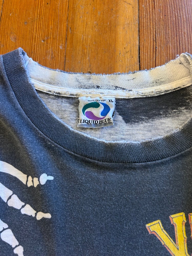 Good vintage condition with light fading, light signs of wear, a few pinholes on the front and back, and collar wear