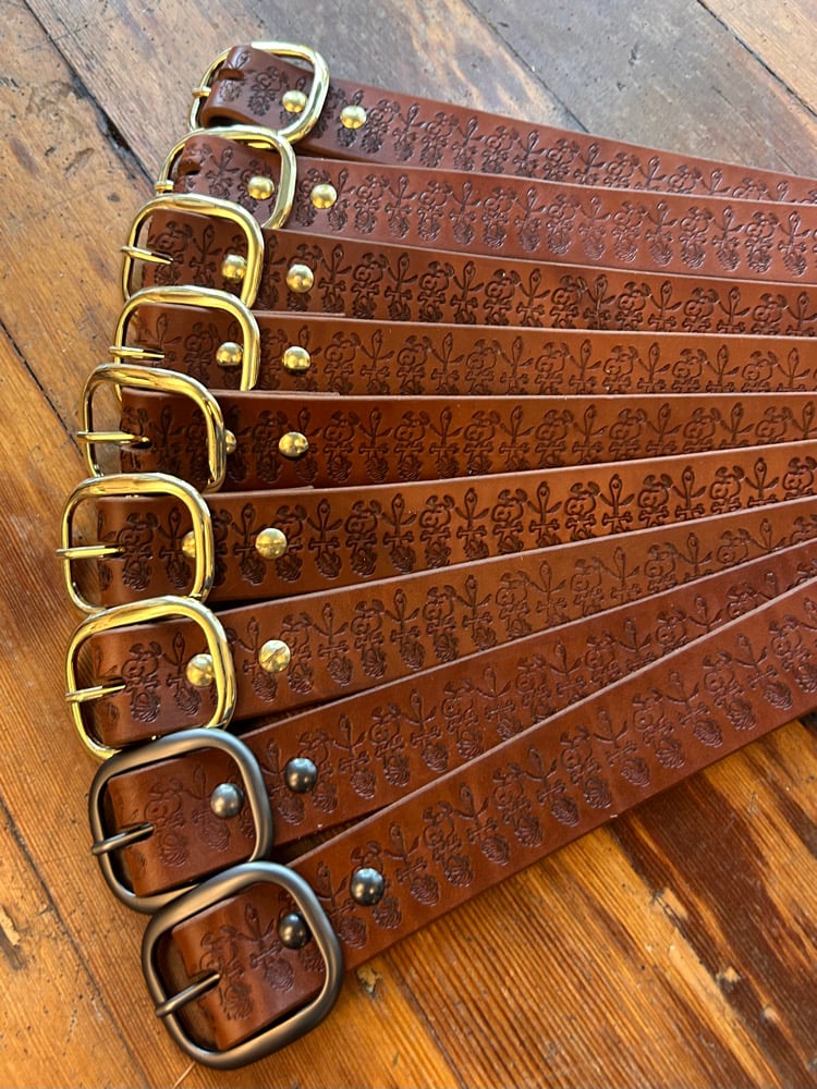 Belts are handmade from start to finish from 8-10oz veg tanned (not vegan) leather and outfitted with a brass plated center bar buckle and hardware. Order your waist size! Extra length is added to account for pants. Each belt will have six different sizing hole options. Belts are generally able to fit 1-2 sizes above the marked size of the belt. There may be minor imperfections as this is a handmade product! I’m very pleased with how these came out. Hope you enjoy them as much as I do! Please expect up to one week for your order to ship.❗️No Returns❗️